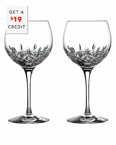 - Waterford Lismore Essence is the next generation of the classic Lismore pattern, retaining the brilliance and clarity of Lismore, while incorporating a more slender, modern profile. A lighter wall and thinner stem combine to give these Lismore Essence Wine Balloon 18 OZ Set/2 a leaner profile. Enhancing the color and aroma of both red and white wines, the intricate detailing of Lismore’s signature diamond and wedge cuts provide a stunning contrast to the comforting weight of Waterford’s hand-crafted fine crystal; resulting in beautiful examples of fine drinkware that define traditional styling even while transcending it. Presented in the signature Lismore box, these glasses make an ideal gift for a wedding, birthday, Valentines Day or special anniversary ensuring your memories can be treasured forever.