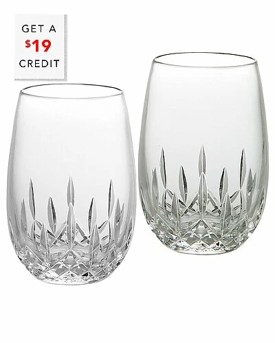 - Featuring the best-selling Lismore crystal pattern, the Lismore Essence Stemless White Wine Pair from Waterford retains the oversized bowl and diamond and wedge accents of a classic Lismore wine glass, while incorporating a trendy and practical stemless design.